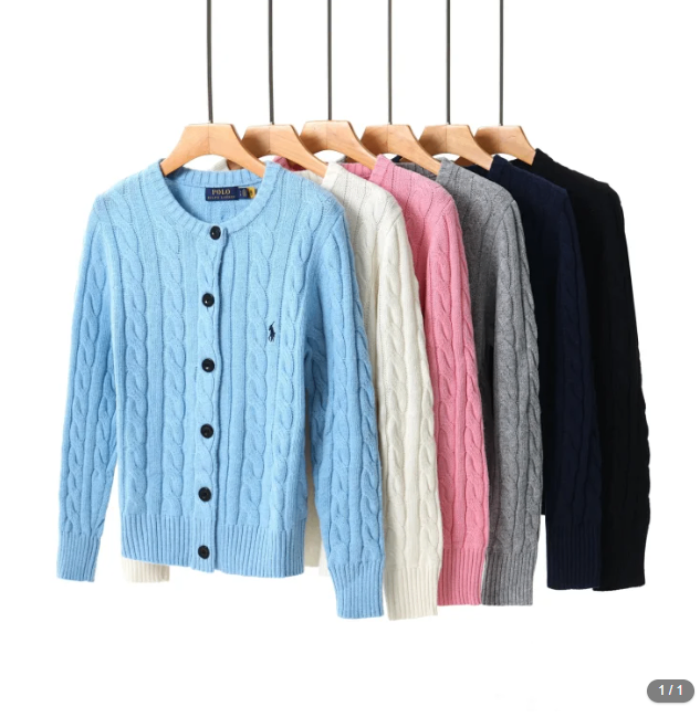 Polo Cable-Knit Cotton Crewneck Cardigan